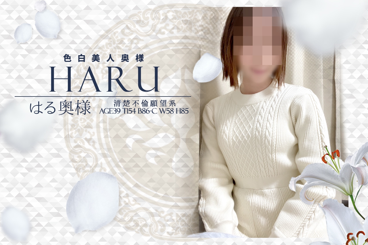 透き通るような色白の美しい柔肌。華奢な身体に、女性らしい色気のある、ボディライン。清楚と可愛らしさをあわせ持った、『はる』奥様。おしとやかでとても礼儀正しい立ち振る舞い、至福のひと時をお過ごし下さいませ